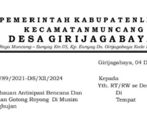 LEBAK, CatatanMediaNusantara – Pemerintah Desa Girijagabaya, berikan himbauan antisipasi bencana dan sekaligus mengajak gotongroyong kepada RT...