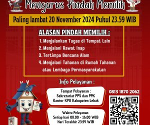 LEBAK, CatatanMediaNusantara – Komisi Pemilihan umum Daerah (KPUD) Kabupaten Lebak menyampaikan seruan tengat waktu pengurusan pindah memilih bagi...
