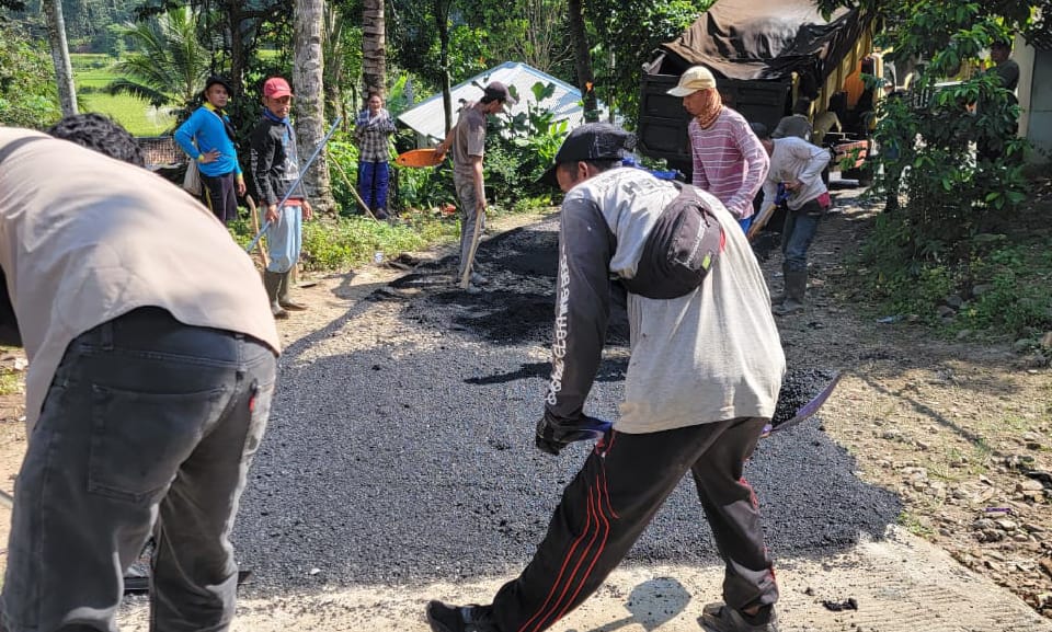 Kegiatan pembangunan infrastruktur tersebut yakni membangun jalan poros desa dengan cara di Hotmix melalui anggaran Dana Desa (DD) Tahun Anggaran 2024.