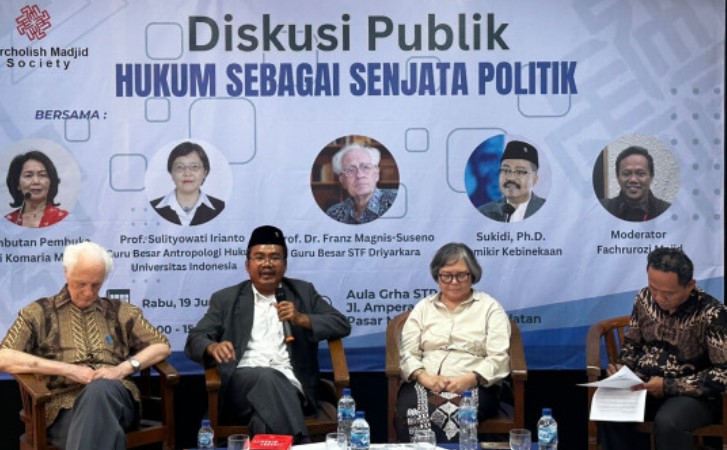 Pembuatan atau revisi peraturan dan perundang-undangan oleh dan untuk kepentingan politik. Bukan untuk supremasi hukum itu sendiri. Melihat kegelisahan yang terjadi saat ini, Nurcholish Madjid Society (NCMS) menggelar diskusi publik bertajuk “Hukum sebagai Senjata Politik” di Gedung STR Ampera Raya, Rabu, 19 Juni 2024.