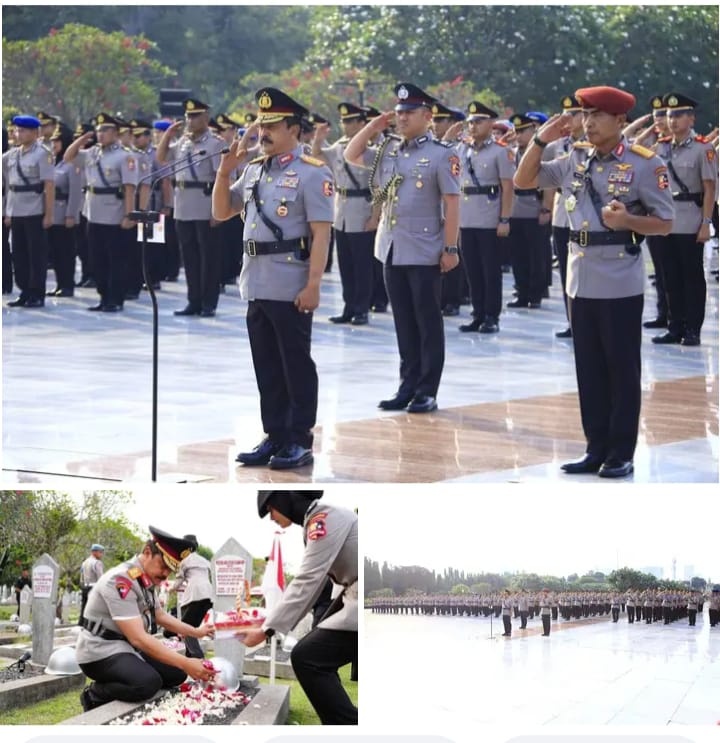 Jakarta – Wakapolri Komjen Agus Andrianto mewakili Kapolri Jenderal Listyo Sigit Prabowo beserta Pejabat Utama (PJU) Mabes Polri berziarah serta tabur bunga ke Taman Makam Pahlawan (TMP) Kalibata, Jakarta Selatan, Senin (24/6/2024).
