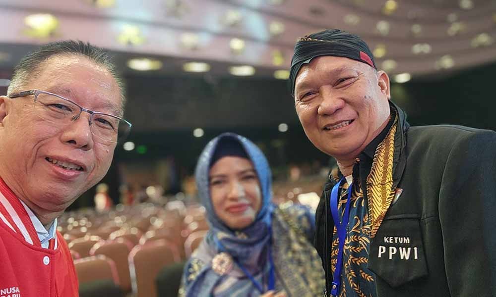 Ketua Umum Persatuan Pewarta Warga Indonesia (Ketum PPWI), Wilson Lalengke, bersama istri yang biasa disapa Mbak Wina, terlihat mengikuti acara itu, duduk di deretan kursi depan yang disediakan bagi para tamu undangan VVIP.