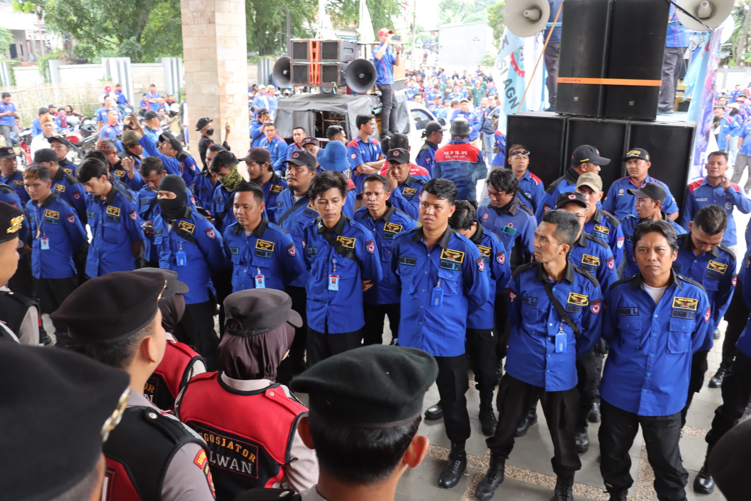 Pengamanan diawali dengan apel personel gabungan, selanjutnya pengamanan aksi dan dilanjutkan dengan apel konsolidasi setelah massa aksi melakukan mediasi dan rapat pleno bersama dewan pengupahan dan Disnaker Kabupaten Tangerang.