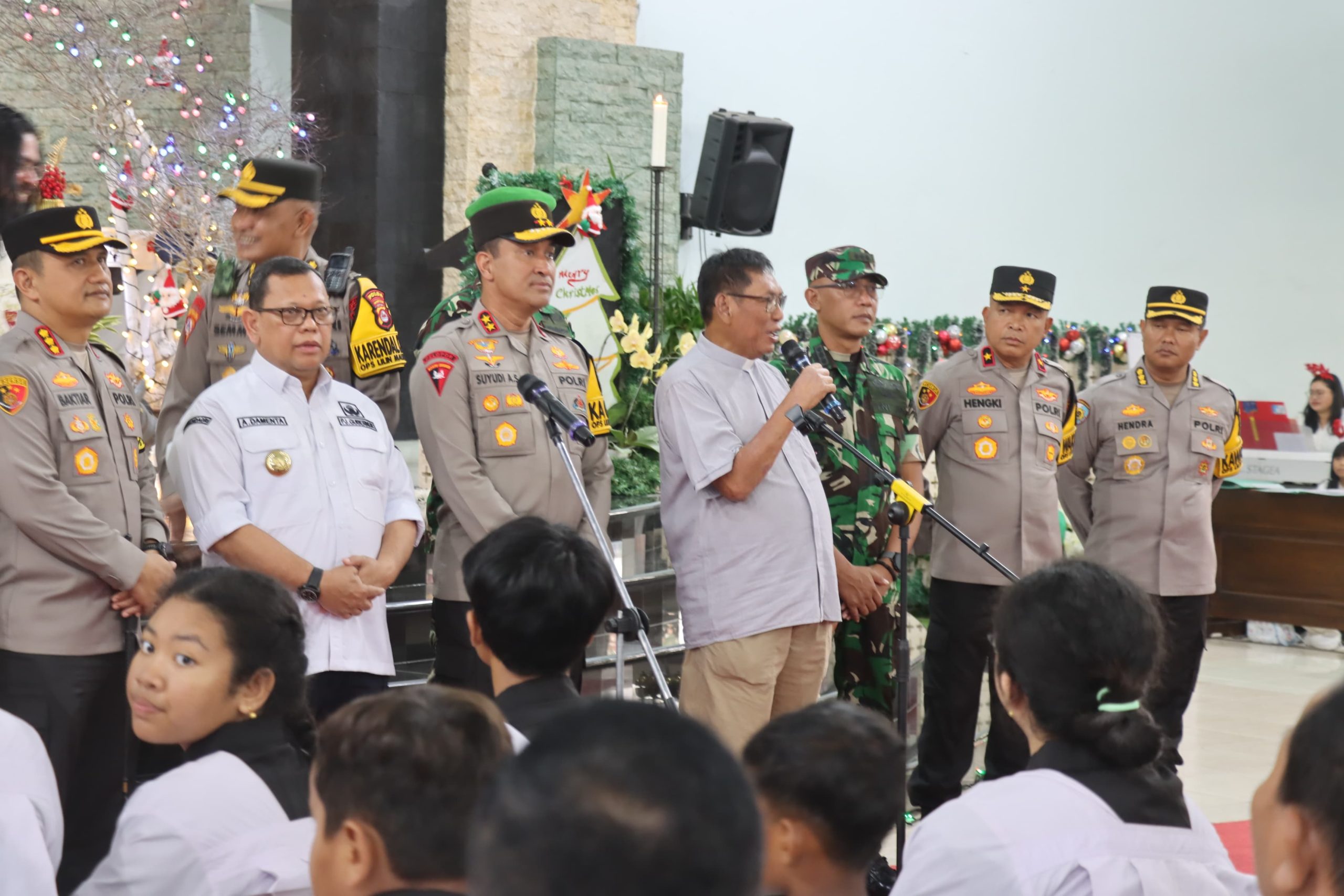 “Kami memastikan bahwa perayaan natal ini dalam keadaan tenteram dan aman, kami hadir bersama unsur TNI Polri, kami juga merasakan kebahagiaan dan kerukunan harus kita jaga, kedamaian harus kita wujudkan bersama,” ungkap PJ Gubernur.