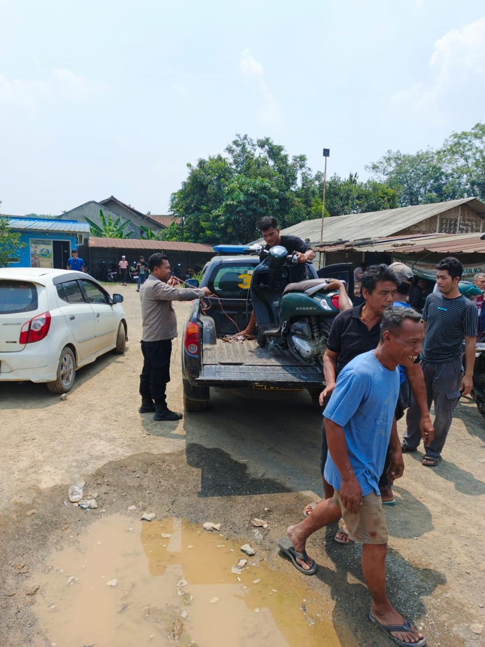 Petugas dari Polsek Rumpin yang tiba di lokasi terdiri dari Bripka Tom Hirala, Bripka Iwan Abdurahman, dan Bripka Saipul Mundir. Mereka segera melakukan serangkaian tindakan, termasuk mengamankan pengemudi dan kendaraan truk, mengecek kondisi korban, mengatur lalu lintas, dan berkoordinasi dengan Unit Laka Polres Bogor.