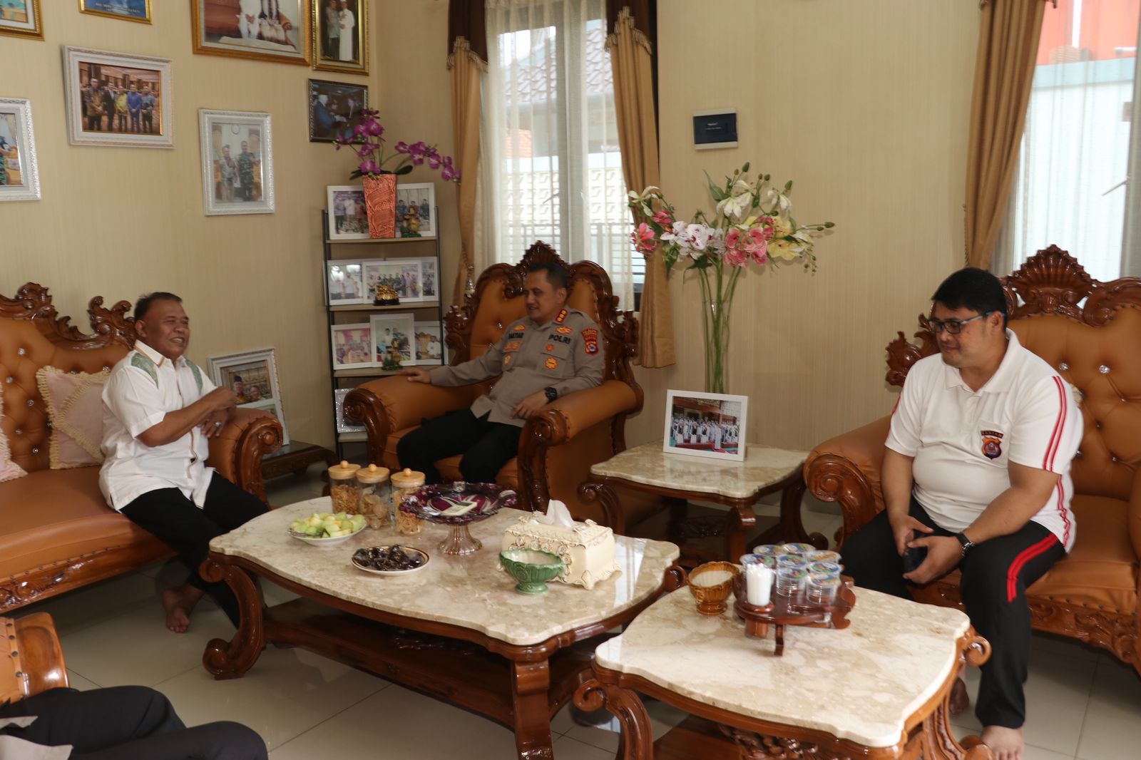 Tangerang, Kapolresta Tamgerang Kombes Pol Baktiar Joko Mujiono, S.I.K.,M.M didampingi Kapolsek Tigaraksa Kompol Agus Ahmad Kurnia saat silaturahmi ke Tomas di wilayah Kecamatan Tigaraksa, Kunjungan silaturahmi dilakukan Kapolresta Tangerang mendatangi kediaman H. Muslim selaku tokoh masyarakat Kecamatan Tigaraksa di Perum Sudirman Indah Kelurahan/Kecamatan Tigaraksa Kabulaten Tangerang, Kamis Sore (4/7/2024).