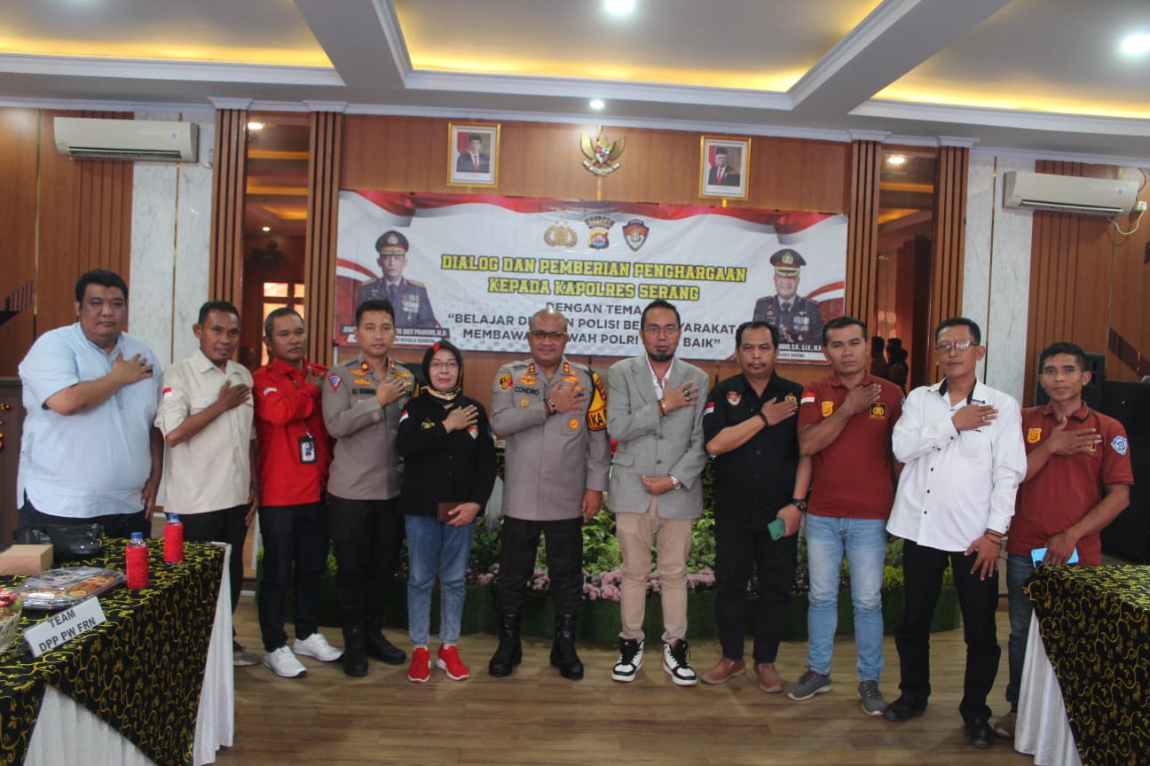 SERANG – Kapolres Serang AKBP Condro Sasongko menerima penghargaan dari Perkumpulan Wartawan Fast Respon Nusantara (PWFRN) atas program Ngariung Iman Ngariung Aman.