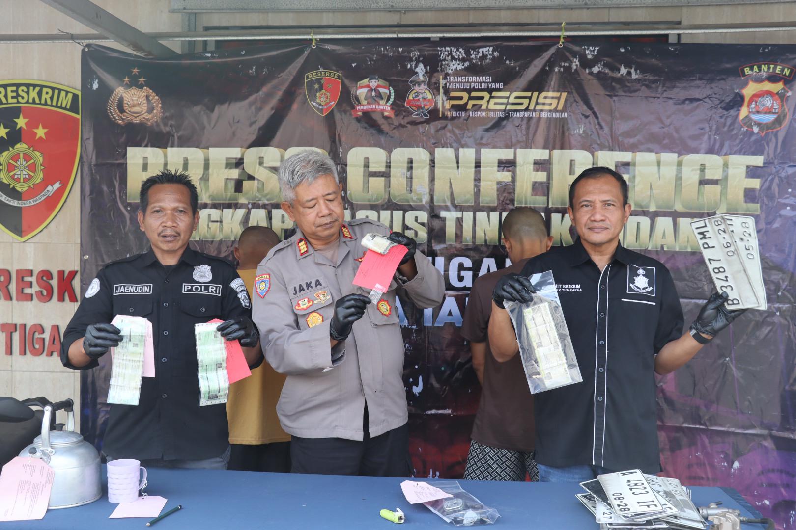 Tersangka D kemudian mengakui bahwa dirinya membuat STNK palsu yang kemudian dijual dengan harga Rp600 ribu per lembar. Atas kejadian itu, tersangka berikut barang bukti dibawa ke Polsek Tigaraksa untuk pemeriksaan lebih lanjut.