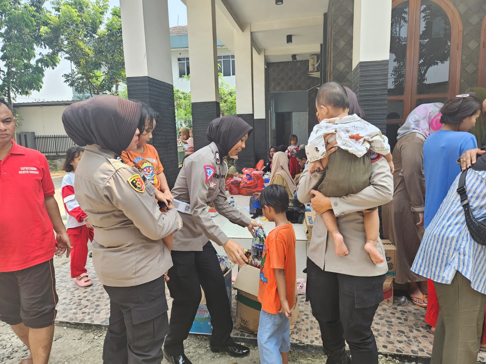 Tangerang, Polwan (Polisi Wanita) Polresta Tangerang Polda Banten untuk memberikan trauma healing kepada korban terdampak kebakaran di Diasrama Polsek Tigaraksa Polresta Tangerang, “Kami minta Polwan-polwan ini berikan trauma healing, kepada warga terkhusus anak-anak ” kata Kapolresta Tangerang Kombes Pol Baktiar Joko Mujiono, S.I.K.,M.M, Sabtu (13/7/2024).