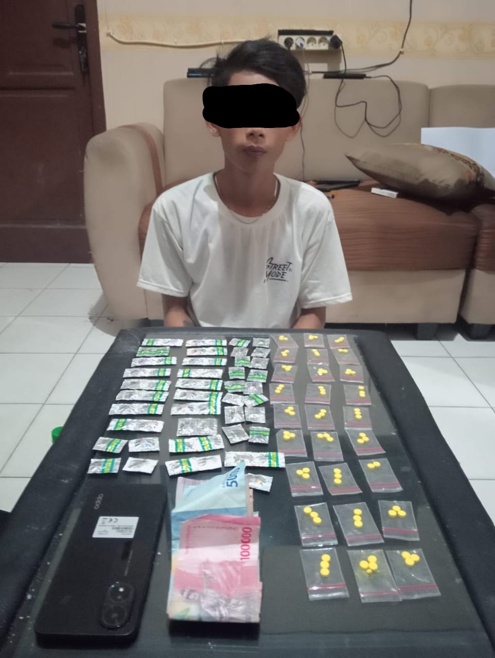 Pelaku MR (21) warga Kalanganyar berhasil diamankan Sat Resnarkoba Polres Lebak berikut barang bukti berupa (satu) buah tas selempang warna hitam, 59 (lima puluh sembilan) butir obat dalam kemasan yang diduga jenis tramadol, 79 (tujuh puluh sembilan) butir obat warna kuning jenis Hexymer, uang tunai hasil penjualan sebesar Rp.189.000.00,- (seratus delapan puluh sembilan ribu rupiah), 1 (satu) unit handphone merk OPPO warna hitam.